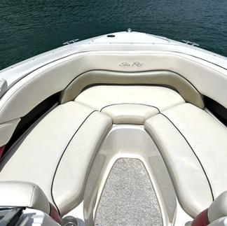 2004 Sea Ray 240 Select Bowrider – PERFORMANCE EDITION! Well-maintained! Upgraded MerCruiser 496 MAG, Bravo III, 375 hp, 450 hours. Corsa Performance exhaust. Trim tabs. Spacious and comfortable… seating includes 2 bow loungers, aft bench, sun pad, and swivel flip-up bolster helm and passenger seats. Cockpit table. Factory tower with speakers. Bimini. Clarion marine stereo and Wet Sounds speakers. Transom shower. Built-in cooler. Head compartment with marine head. Lots of storage. Full cover. Snap-in carpet, upgraded upholstery, and gel coat in excellent condition! FRESHWATER boat. Come and See!