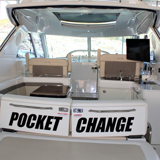 Inside, the cabin is spacious with plenty of room to roam! Numerous hatches and portlights add natural light. Comforts of home include Cruisair marine AC/heat, and water heater. Large sofa with dining table. Loaded galley with solid surface counters, refrigerator/freezer, sink, cooktop, microwave, and lots of cabinets for storage! Cabin media room has theater seating, blue LED accent lights, DVD player, 40" flatscreen, and Bose sound system. This media room doubles as a second sleeping area with privacy curtain. Master stateroom is behind a privacy door and has a double island berth, cedar lined hanging lockers, reading lights, and flatscreen TV. The head has dual access to the master and the salon, and has a sink, counter, and VacuFlush pump-out head. There is a separate shower room.