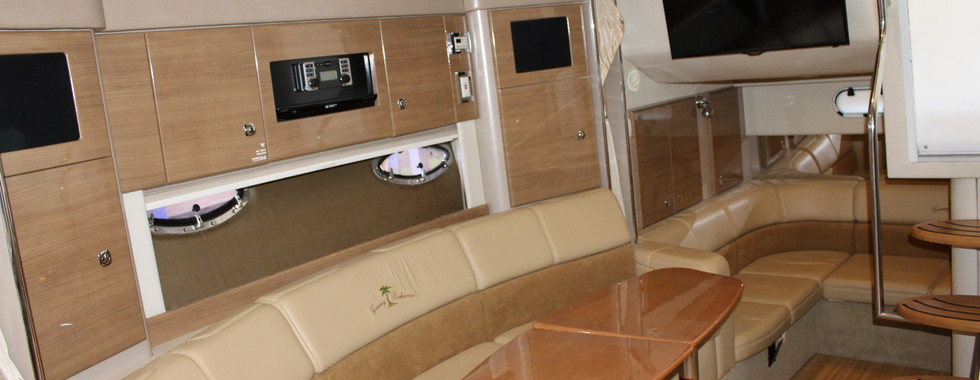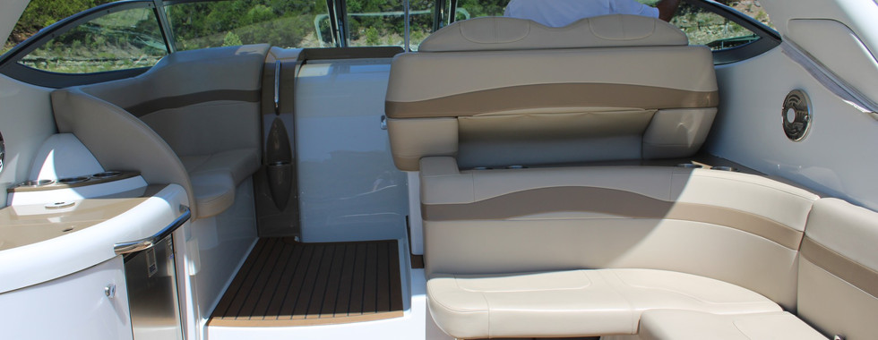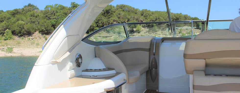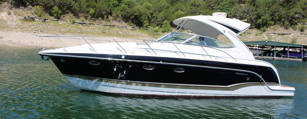 INSIDE this beauty is plenty of headroom and boasts loads of light with portlights and hatches. Ducted AC/heat, 18,000 BTU reverse cycle air conditioner. Hot water. Full galley has Corian counters, sink, refrigerator, two-burner cooktop and microwave. Queen V-berth and convertible queen berth/sitting area mid cabin. The dining area with table and curved couch converts to a third full-size berth! TVs and stereo. Head includes shower, sink, VacuFlush head and portlight. Like all Formula cruisers, this one is no exception with tasteful, neutral interior colors and finishes including stainless, cherry wood, Ultraleather upholstery and wood flooring. Lots of storage in the cabin including hanging lockers. FRESHWATER boat stored in covered slip. Very well maintained. Recently detailed. You have to see this one!